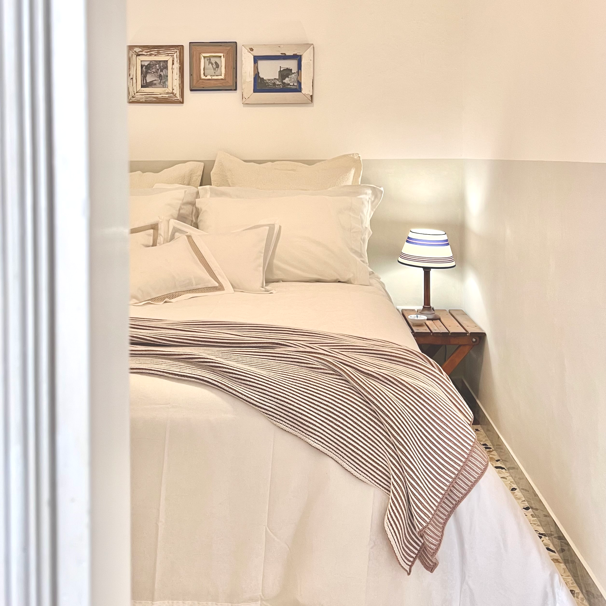 Questa dimora offre ai suoi ospiti l’emozione di un soggiorno nel cuore della città antica, tra archi in pietra, campanili barocchi, giardini segreti e palazzi storici dai muri in tufo, location di film e serie tv. L’arredo è ispirato alle vecchie case dei primi del novecento e alle tradizioni storiche di Monopoli, offrendo nel contempo elementi di grande comfort come i materassi Simmons certificati.