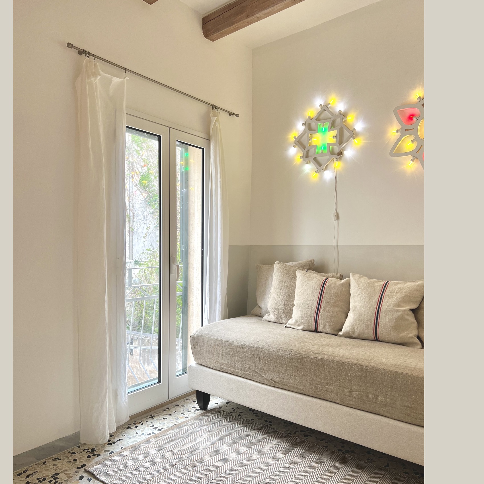 Situata al secondo piano, la casa gode della luce di due portefinestre e ha un terrazzo al piano. Al piano superiore un ulteriore grande terrazzo con emozionante vista mare, con pergola ombreggiante in teak e lettini prendisole. Potrete godere dello splendido terrazzo sia di giorno che di sera: romantici momenti per guardare le stelle o leggere il vostro libro preferito tra campanili, palazzi storici e giardini segreti. E, perchè no, anche lavorare da remoto in un luogo incantevole.